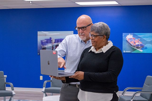 Land transportation is a complex and demanding field, and safety isn’t optional. In 2024, Crowley supported efforts to enhance visibility and accountability across our carriers and fleets. By integrating and enhancing technologies like GPS tracking, video monitoring and driver platforms, teams have reduced the severity of incidents and improved cargo security. These tools also help optimize routes, reducing fuel use and emissions. We continue to stand behind systems, technologies and processes that protect people, goods and the environment at every mile.